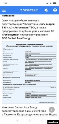 Ўзбекистондаги энг йирик энергетик компанияларни бошқариш ҳам Шодиев гуруҳига тендерсиз берилган
